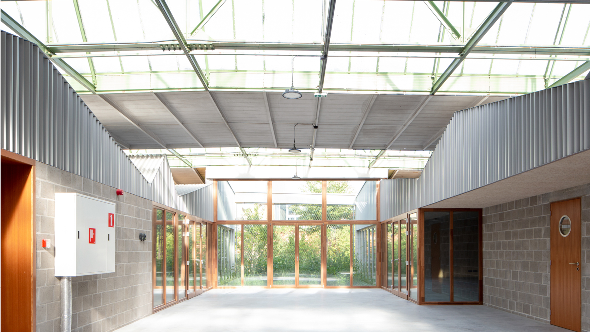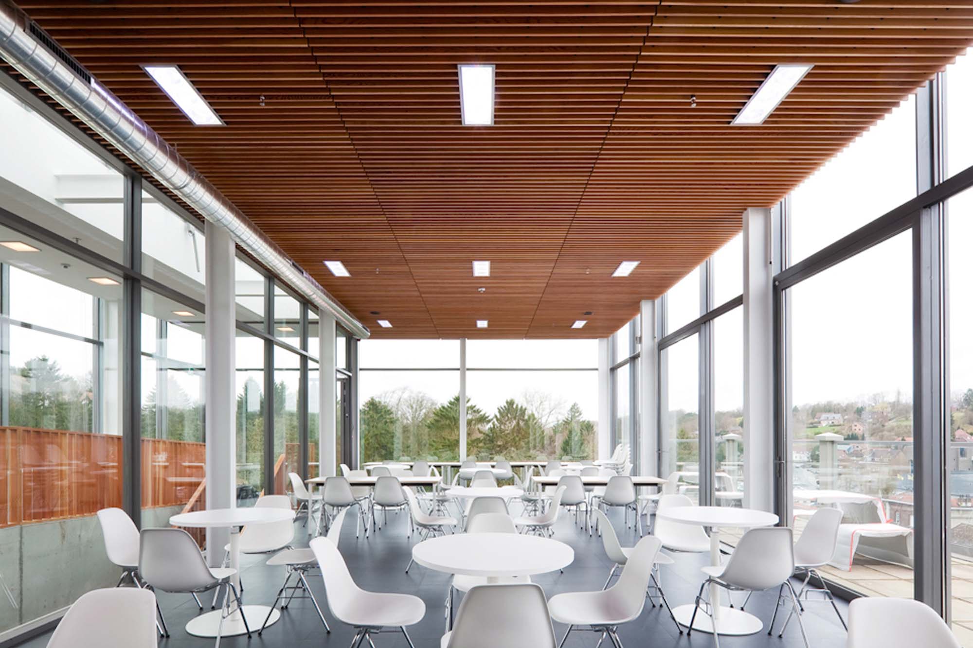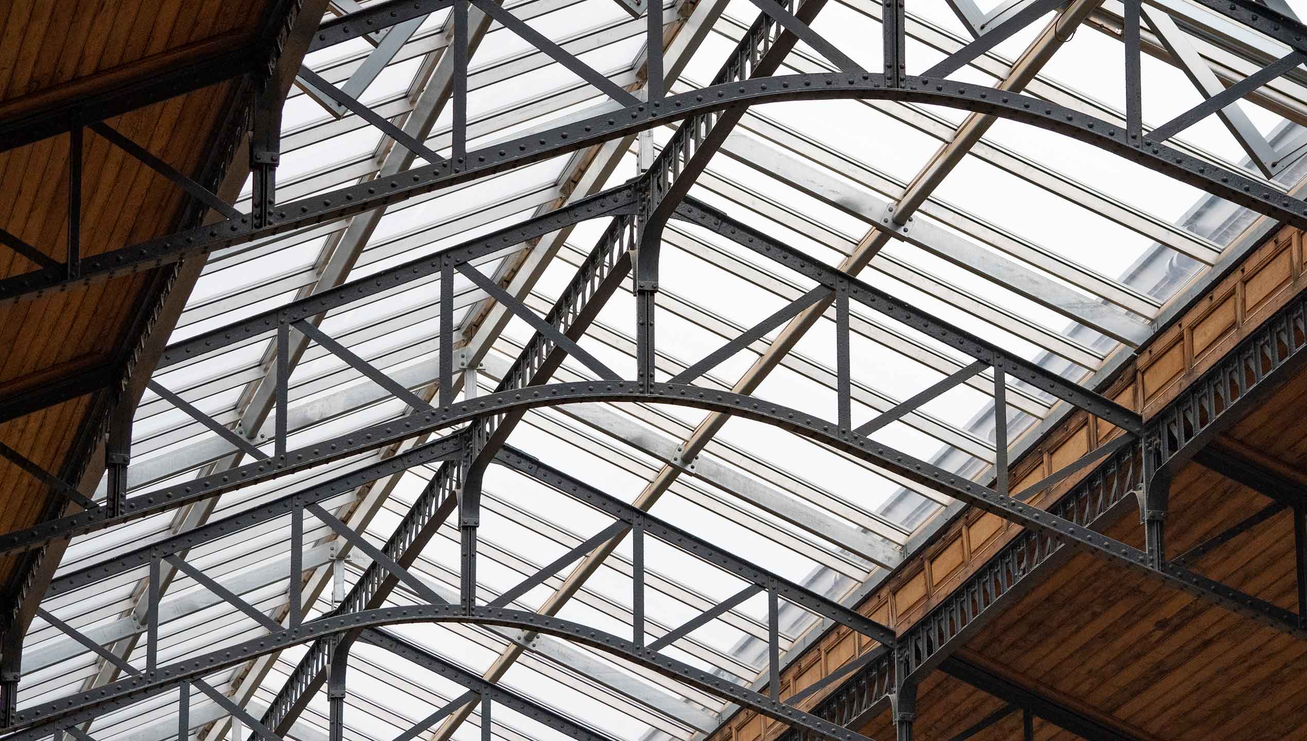 Een bioklimatisch glasdak opgebouwd uit boogspanten