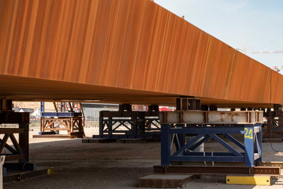 Hier wordt volop gebouwd aan 2 bruggen uitgevoerd in weervast staal ('corten'). KW01 zal uiteindelijk een brug voor fietsers en voetgangers zijn, KW02 is de brug voor de auto’s. Het gebruik van cortenstaal is voor zo'n technisch complex brug-concept een unicum in België (2350 ton staal).