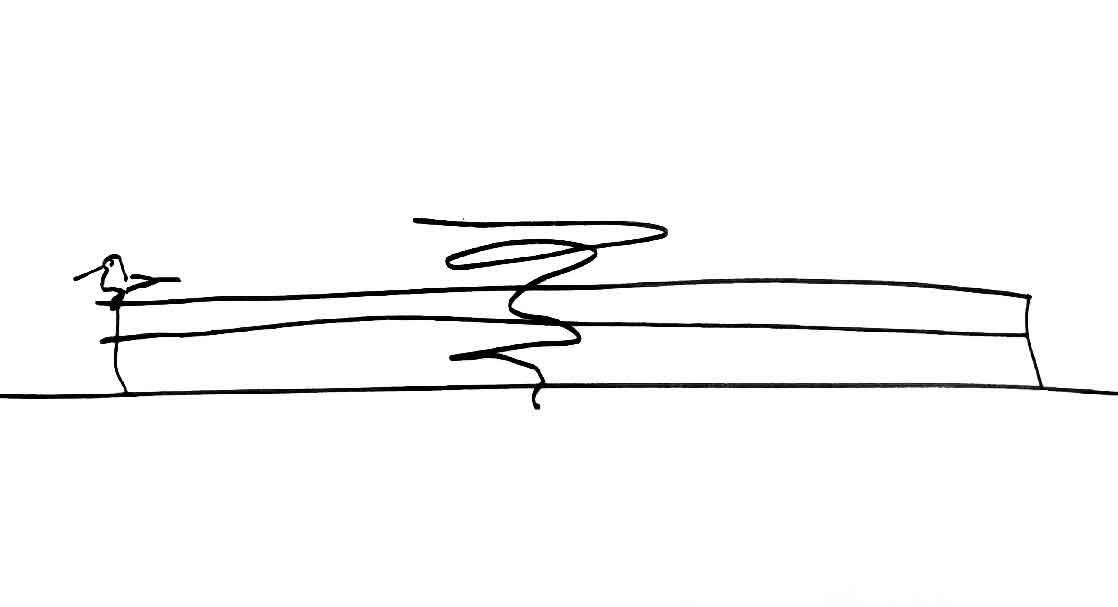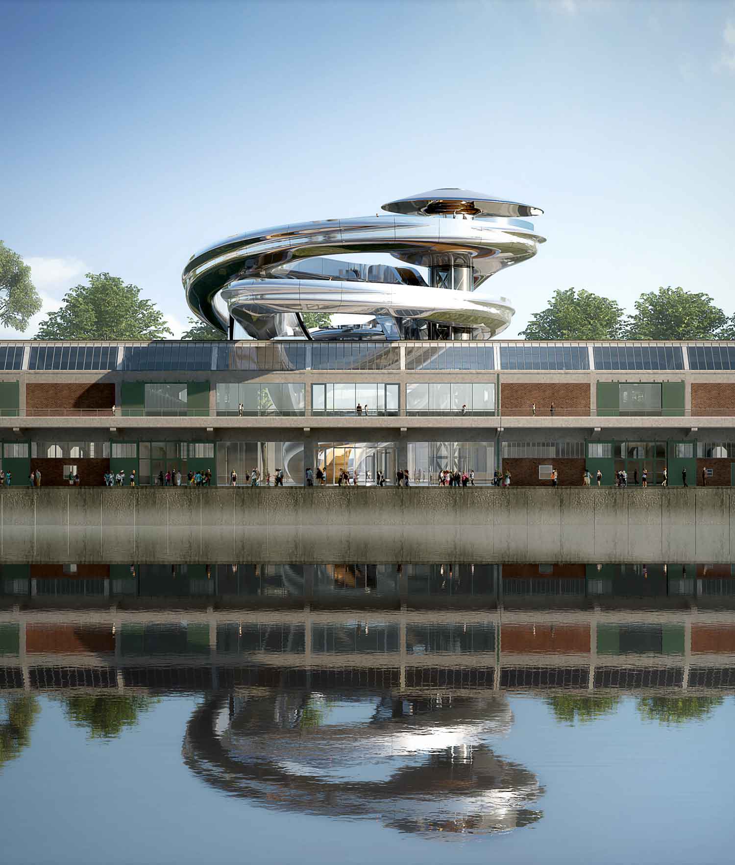 In het midden van de loods is een grote sparing gemaakt van ca 25-27m2. Op deze plaats is door MAD architects een tornadovormig kunstwerp ontworpen. Dit kunstwerk dient als loopbrug naar een uitkijkbordes, waarvan men kan genieten van een prachtig uitzicht op de stad. De tornadoconstructie is uitgevoerd als spaceframe van ronde buizen. Dit spaceframe wordt afgewerkt met een roestvast stalen bekleding. In de sparing in de bestaande loods is een tafelconstructie gemaakt waar de tornado geplaatst wordt. Hiermee wordt de tornado losgehouden van de bestaande betonconstructie.