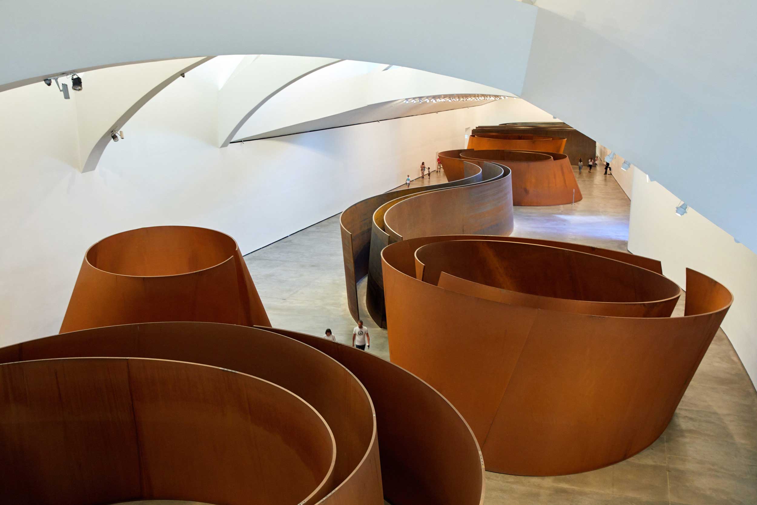 Toen de zware industrie in de late 20e eeuw instortte, begon Bilbao aan een ingrijpende transformatie. Oude havenzones en fabrieksgebieden maakten plaats voor cultuur, architectuur en publieke ruimte, zonder het industriële erfgoed uit te wissen. Het Guggenheim Museum werd het symbool van deze vernieuwing. Verspreid door de stad herinneren stalen sculpturen en herbestemde industriële gebouwen aan Bilbao’s verleden, dat een zichtbare plaats behoudt in het moderne stadsbeeld.