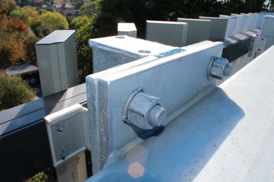 Tekst: Pont de liaison galvanisé situé au-dessus de l'entrée du parking souterrain de la tour Victoria (Regina) à Bruxelles. Ce pont, qui fait partie de la grande rénovation de la tour, assure la liaison et sert de voie d'évacuation vers le parc voisin. Le constructeur métallique été chargé de la réalisation complète de ce pont, depuis le relevé des mesures jusqu'au montage, en passant par la structure et la finition du pont, des garde-corps et de l'escalier. Victoria est un bâtiment emblématique, construit entre 1974 et 1978, qui servait de siège belge à IBM dans le quartier nord de Bruxelles. Son architecture iconique, étroitement liée à la marque IBM, est considérée comme une valeur archétypale et sert donc de point de départ pour le développement futur. Le projet de rénovation vise à transformer la structure existante en un bâtiment hybride, sans énergie fossile et à faible consommation d'énergie, en maximisant la réutilisation des matériaux de construction. La structure en béton et en acier est donc considérée comme un élément permanent pour les changements futurs.