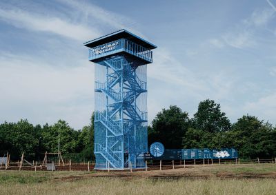 Tekst: A présent qu’une tour d’observation de 30 m garantit une vue magnifique sur la région, les amateurs de nature et d’architecture goûtent encore plus, désormais, le Sahara lommelsois, un petit échantillon de nature intacte qui fait partie du Paysage Régional de la « Basse Campine ». Cette construction est constituée de six triangles enchaînés qui sont entourés par environ quatre kilomètres de cordage marin. En enveloppant la tour du cordage alternativement lâche et tendu, on crée une référence subtile aux lignes ondoyantes du Sahara.
