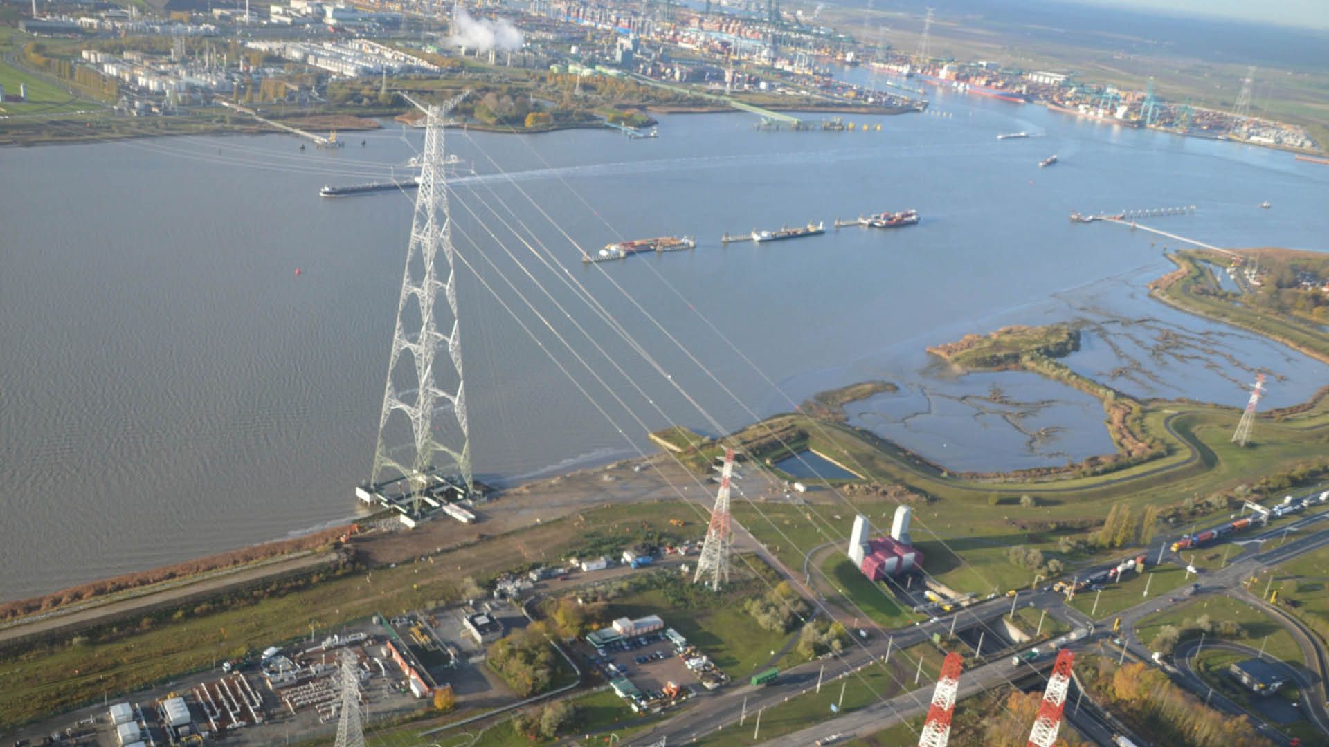 Le projet Brabo dans le port d’Anvers est la réponse d’Elia à deux besoins majeurs : l’augmentation de la capacité du réseau haute tension pour garantir la sécurité d’approvisionnement de toute la zone portuaire d’Anvers et le renforcement de l’axe nord-sud du réseau haute tension belge et des interconnexions internationales européennes entre les réseaux électriques. La phase II du projet a consisté en la construction de 58 nouveaux mâts en treillis, dont quatre sont exceptionnels : P2 et P3, deux pylônes de 192 m de haut qui assurent le franchissement de l’Escaut (ce sont les pylônes haute tension les plus élevés du Benelux !) et P4 et P5, deux pylônes de 142 m de haut qui permettent d’enjamber le Dock du Canal. Les pylônes ont été conçus dans des profilés en L en acier S355J2 ayant une dimension maximale de L 300 x 300 x 35. Les deux pylônes les plus hauts ont un poids de 572 tonnes chacun et sont construits à partir de 15.026 pièces qui ont été reliées par 58.987 boulons, la pièce la plus longue faisant 12 m de long./