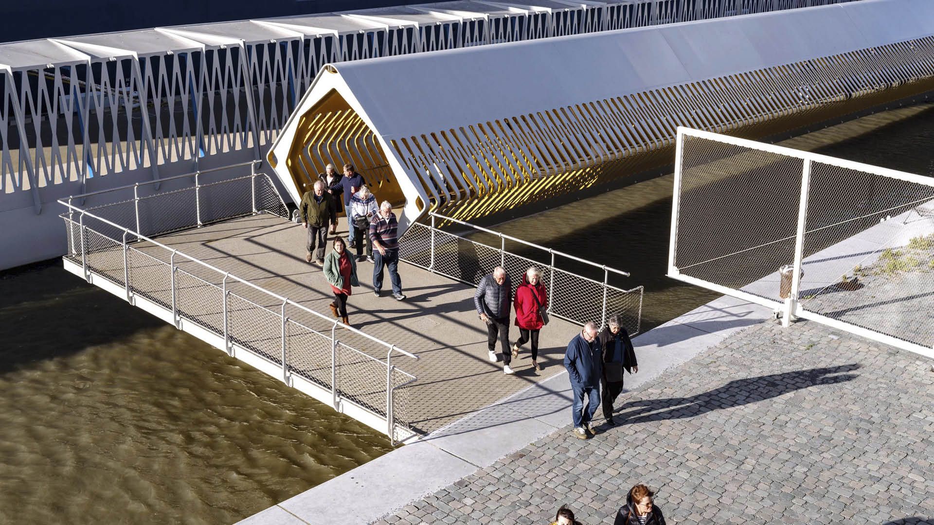 Compte tenu de la forte variation du niveau de l'eau de l'Escaut, les ponts d'accès doivent avoir une portée de 70 mètres. La conception des ponts est le résultat de l'efficacité structurelle et du confort des utilisateurs.