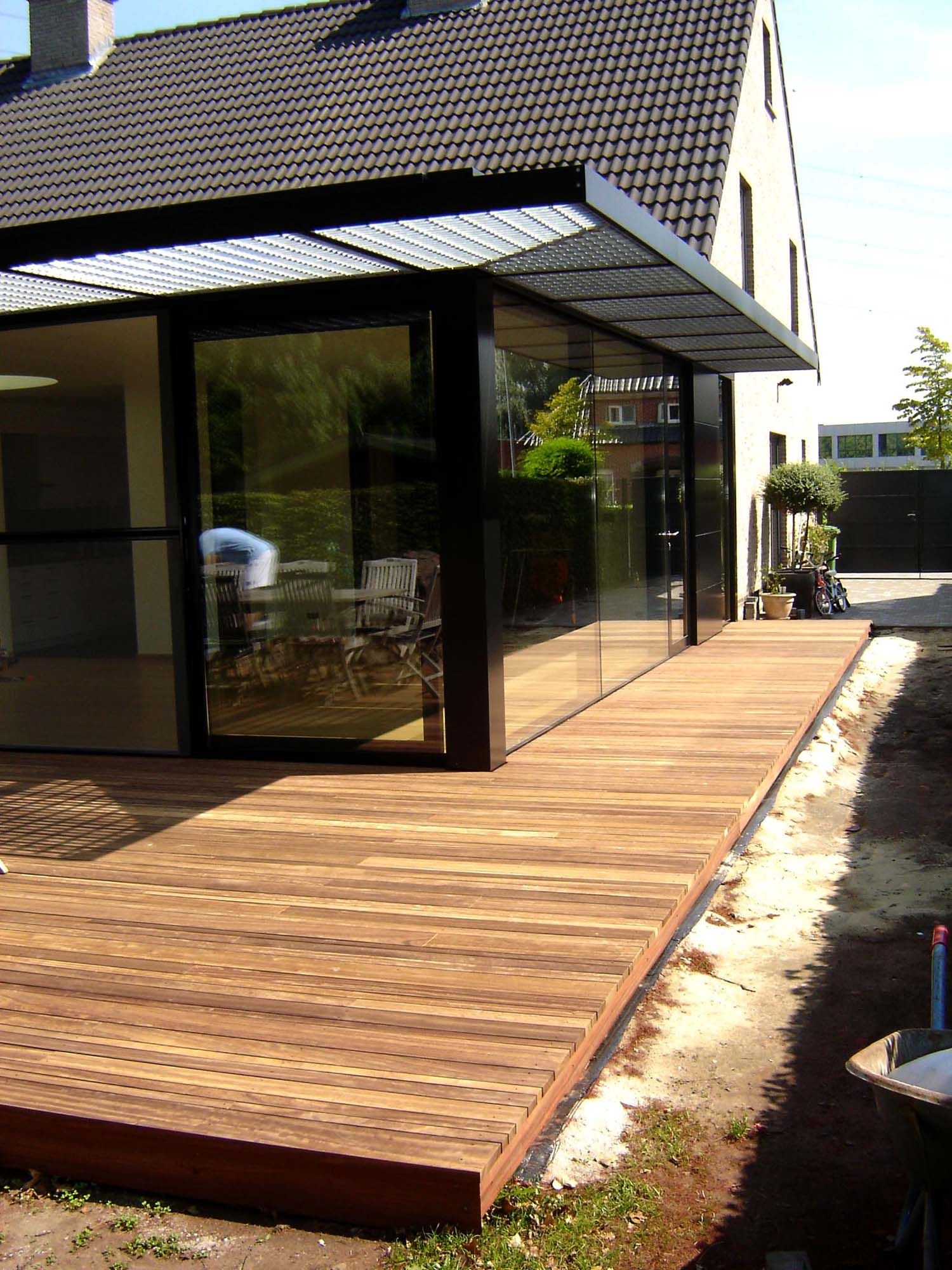 Dans un lotissement typique de maisons jumeleés à la typologie identique, il faut oser relever le défi si l’on cherche à donner à une habitation existante une plus-value certaine par l’adjonction d’une extension. Les habitants d’une maison unifamiliale semi-ouverte située à Schrijberg en ont fait le pari en optant résolument pour une annexe contemporaine dans une ossature en acier. Au lieu de prolonger l’habitation, on a choisi de mettre le projet au maximum en contraste avec le bâti existant, aussi bien dans la forme d’expression que dans l’utilisation des matériaux. Dans le même temps, on a cherché à établir une interaction entre l’extension et le jardin en intégrant de grandes verrières coulissantes dans la façade arrière. Les architectes ont délibérément choisi l’acier, tant pour les nombreuses possibilités qu’il offre pour la finition des détails de la menuiserie extérieure en acier peint par poudrage que pour l’élégance de la structure en acier et le fini de la façade.