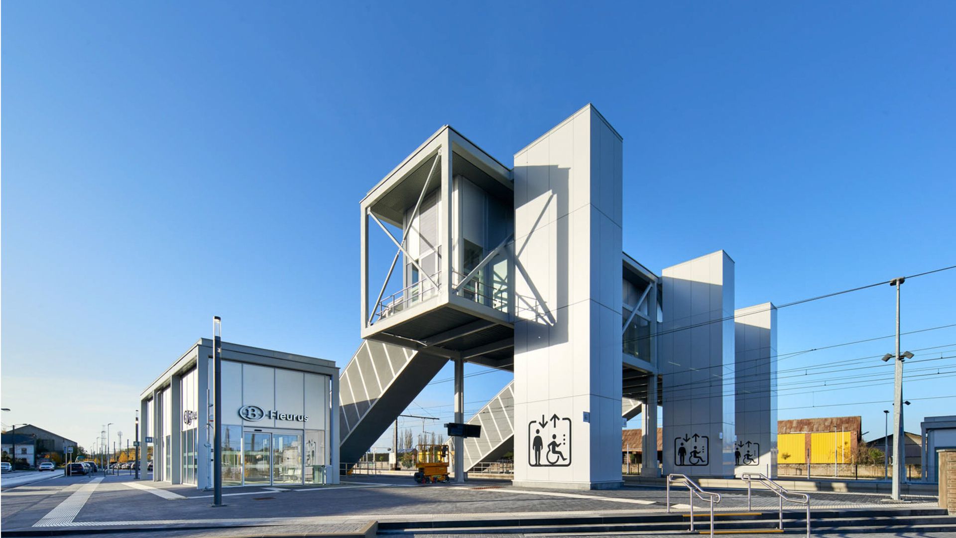 La gare de Fleurus est conçue comme un écosystème-gare : la gare n’est plus un seul bâtiment figé mais une série d’objets identifiables formant un tout cohérent. Chaque objet est conçu pour favoriser la flexibilité et l’évolutivité, imprimer une grammaire architecturale commune et identifiable, tout en répondant au programme de mise en accessibilité autonome du site, d’optimalisation de l’intermodalité (bus-train, dont les liaisons vers l’aéroport, auto-train, vélo-train) et de renouvellement des quais.