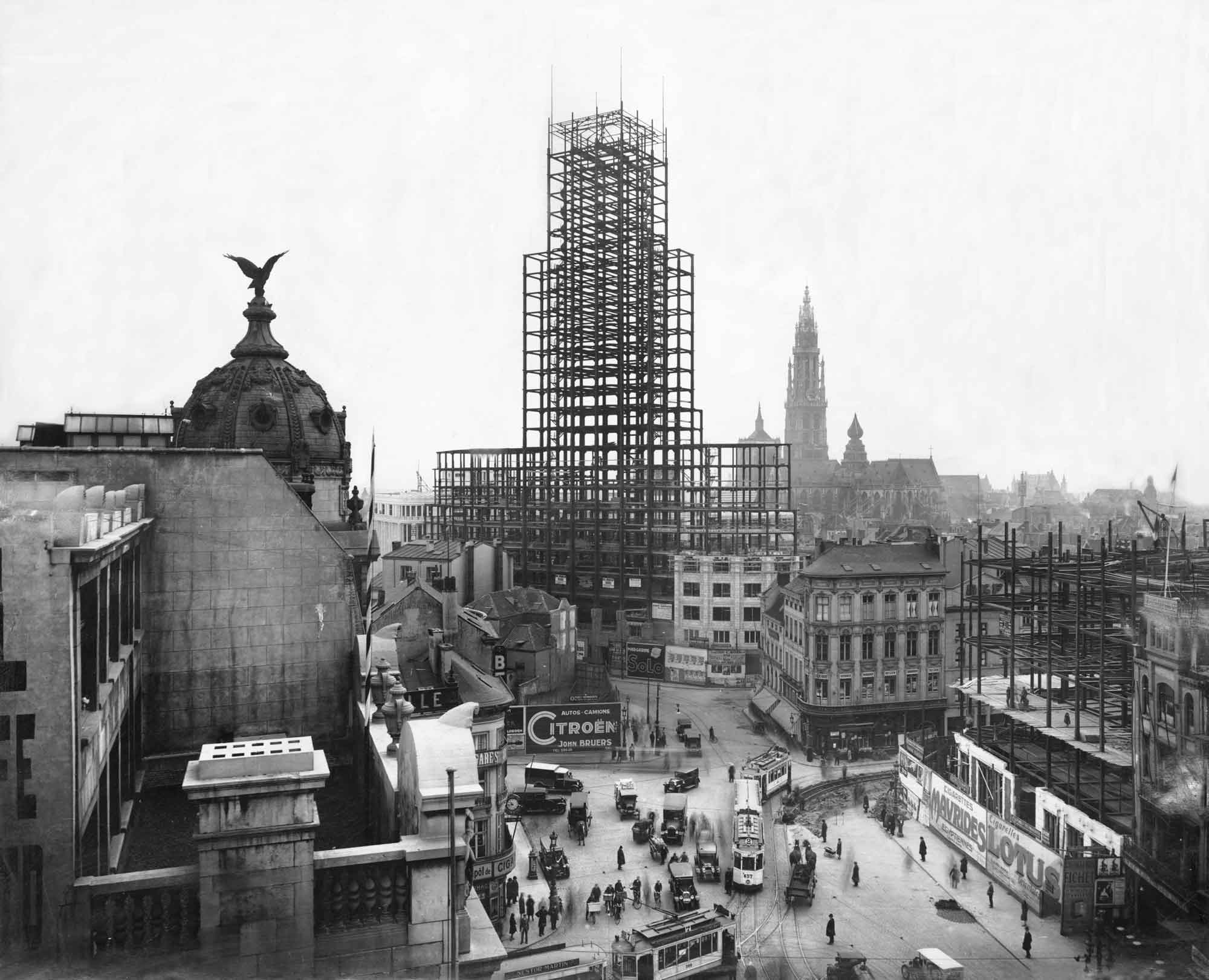 Het voltooide staalskelet circa 1930 -
