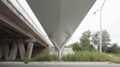 <p>De drie stalen fietsbruggen beantwoorden aan eenzelfde vormentaal. Een uitgepuurd dwarsprofiel, dat samengesteld is uit louter constructieve elementen in plaatstaal, samengebracht tot een eenvoudige architecturale vorm. Voor de fietsbrug over de Volhardingslaan wordt de totale overspanning van 42,50 m gehalveerd door het plaatsen van een centrale gevorkte betonnen pijler.</p>