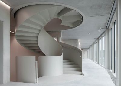 Tekst: <p>De nieuwe wenteltrap bedient verschillende niveau’s van een penthouse in een bestaand gebouw. De constructie omvat de ellips- en spiraalvormige trap met getorste platen alsook de verschillende niveau’s in het penthouse. </p>