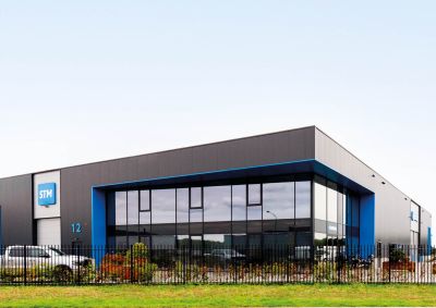 Tekst: <p>STM Machinebouw nam zijn intrek in een nieuwbouw met kantoren en productieruimte in het Nederlandse Oss. In een eerste fase werd het productiegedeelte gerealiseerd: twee afzonderlijke hallen met eigen kraanbaanliggers. De combinatie van verticaal gemonteerde sandwichpanelen en horizontaal gemonteerde sectionaalpoorten geeft de gevels extra cachet. </p>