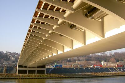 Tekst: <p>De Pont Neuf-brug in Compiègne, een stad gele-gen op 80 km ten noordoosten van Parijs, verbindt de twee oevers van de Oise. Bedoeling was het hart van de agglomeratie een nieuwe dynamiek te bezorgen en de banden tussen de linker- en rechteroever van de Oise en het centrum van de stad, aan te halen. De brug is het sluitstuk van deze vernieuwing.<br>