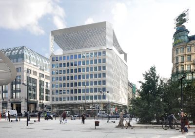 Ondertitel: Structure métallique monumentale au sommet d'un immeuble de bureaux rénové