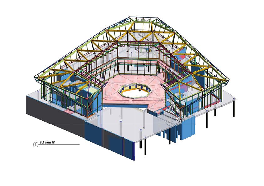 Royal-Hamilius is een gemengd project met woningen, kantoorruimtes en winkels dat uit vijf gebouwen bestaat, waarvan het emblematische B1 de Galeries Lafayette huisvest. Het gebouw wordt gekenmerkt door een niet-structurele stalen gevel met de vorm en de uitstraling van een diamant. De hoofdgevel is bevestigd aan de gewapende betonnen draagstructuur van het gebouw. Er is 97 ton S355JR-staal gebruikt voor de gevel en 22 ton voor het glazen dak boven het centrale atrium – hoofdzakelijk buisprofielen met standaardafmetingen. De keuze voor staal is vooral ingegeven door de zeer grote afstand tussen de verticale profielen van de vliesgevelconstructie – een horizontale overspanning van 9,09 meter – waardoor het gebruik van aluminium onmogelijk was. Het restaurant op het dak bestrijkt de twee bovenste verdiepingen. De staalconstructie (54 ton S355JR-staal) is een kunstwerk op zich, want geen enkel element is verticaal – zelfs de kolommen niet.