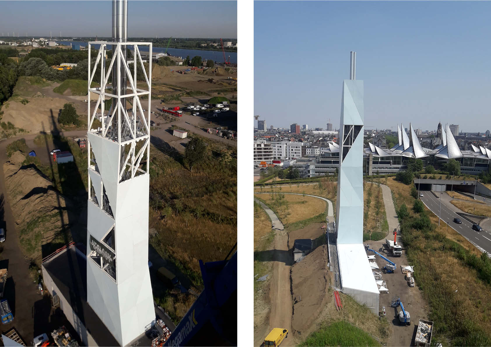 Een nieuwe 50 m hoge toren is het paradepaard van het duurzaam woonproject dat de stad Antwerpen in het kader van de klimaatdoelstellingen van 2050 ten zuiden van de Scheldekaaien ontplooit. Hij vormt het zichtbaar sluitstuk van het warmtenet dat de ganse wijk van verwarming moet voorzien.