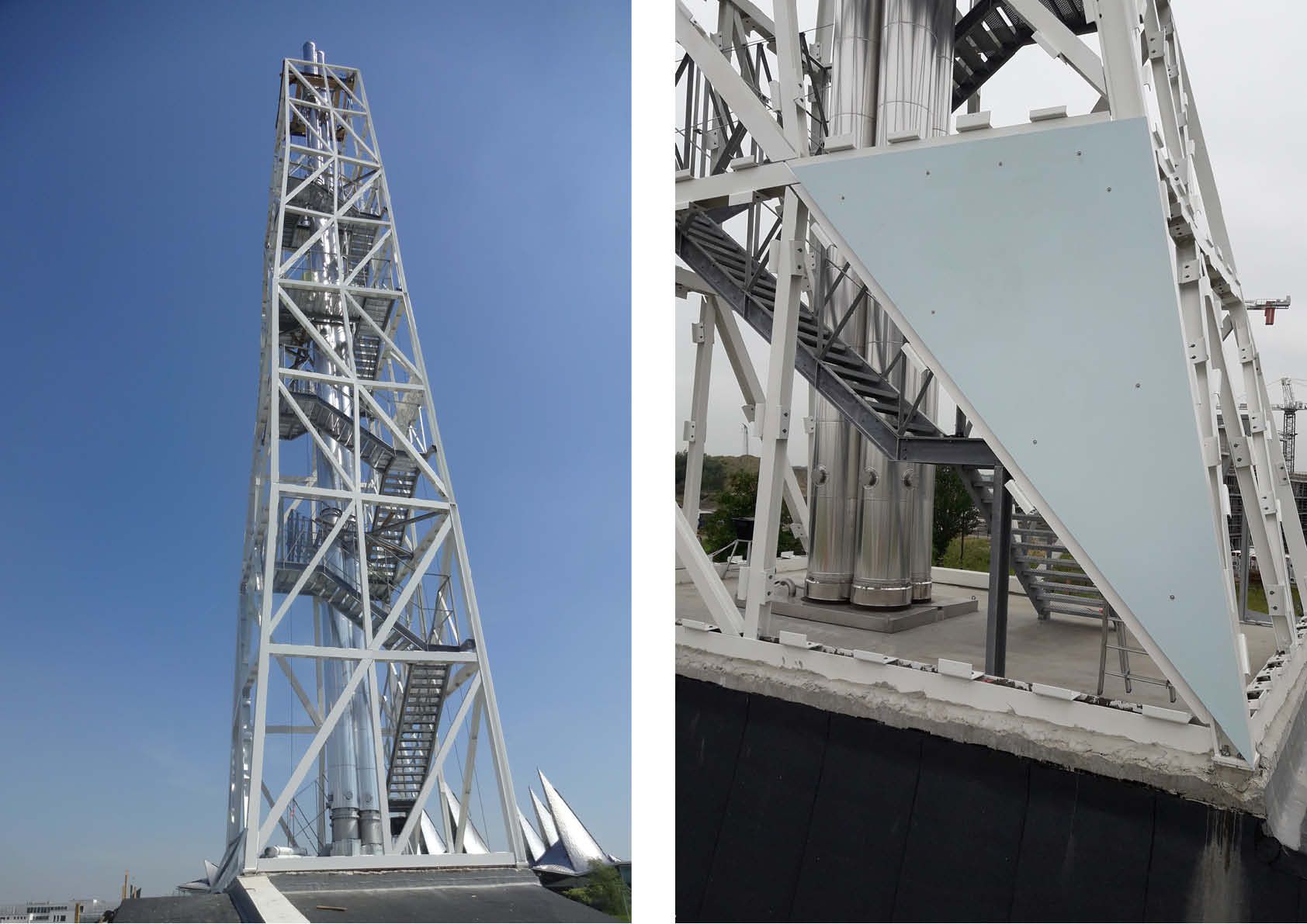 De toren zit vernuftig in elkaar. Elk van de vier zijden is een getrianguleerde structuur bestaande uit HE A/B/M-profielen waarbij de hoofddiagonalen en de hoekkolommen de kenmerkende knikken vormen. De staalstructuur werd uitgevoerd in S355-J2. Voor bepaalde kopplaten was Z15 vereist. De corrosiebescherming gebeurde door middel van galvanisatie en een natlaksysteem C4 met een lange levensduur.