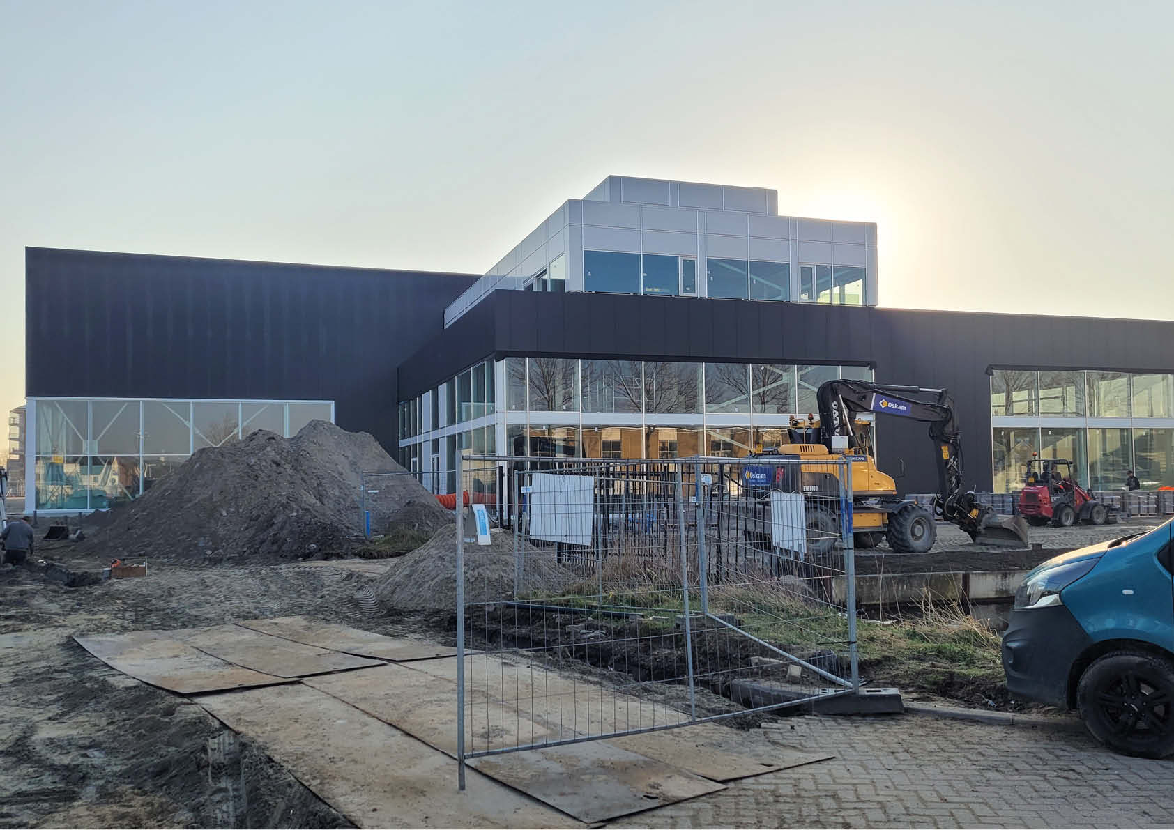 Vastgoedmakelaar Aron Investments uit Tilburg (NL) startte begin 2021 met de eerste fase van de 5.000 m2 logistieke hal in Berkel (NL). Eind 2021 werd ook de tweede fase, een gelijkvloerse kantooromgeving met bovenliggende appartementswoningen in uitvoering gebracht. Door de ligging werd het esthetische aspect van het gebouw een belangrijke factor in het ontwerpproces.